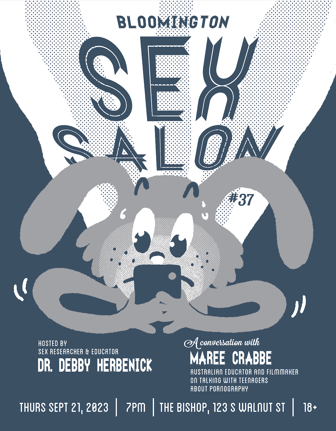 On Thursday September 21, we were delighted to bring the Bloomington Sex Salon back to meeting in person at The Bishop for the first time since the COVID-19 pandemic. Our featured guest was Australian filmmaker, educator, and violence prevention specialist, Maree Crabbe, from the organization It’s Time We Talked. Interviewed by CSHP Director Dr. Debby Herbenick, Maree spoke to a standing-room only crowd on the topic of talking with teenagers about pornography.