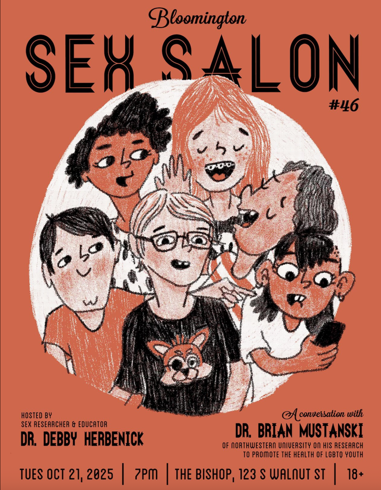 Our next Bloomington Sex Salon is scheduled for October 21st at 7:00pm. This month, we'll be hearing from Dr. Brian Mustanksi, an internationally recognized expert in LGBTQ+ health promotion and HIV prevention! We hope to see you at the Bishop for this wonderful community conversation! This Sex Salon will follow our typical schedule, where Drs. Mustanki and Herbenick will discuss LGBTQ+ (sexual) health promotion, his work in HIV/AIDS research and advocacy, and the health and wellbeing of LGBTQ+ young people for the first 30-40 minutes. We will then open the conversation and answer questions from you all in the community for Dr. Mustanski about his work!