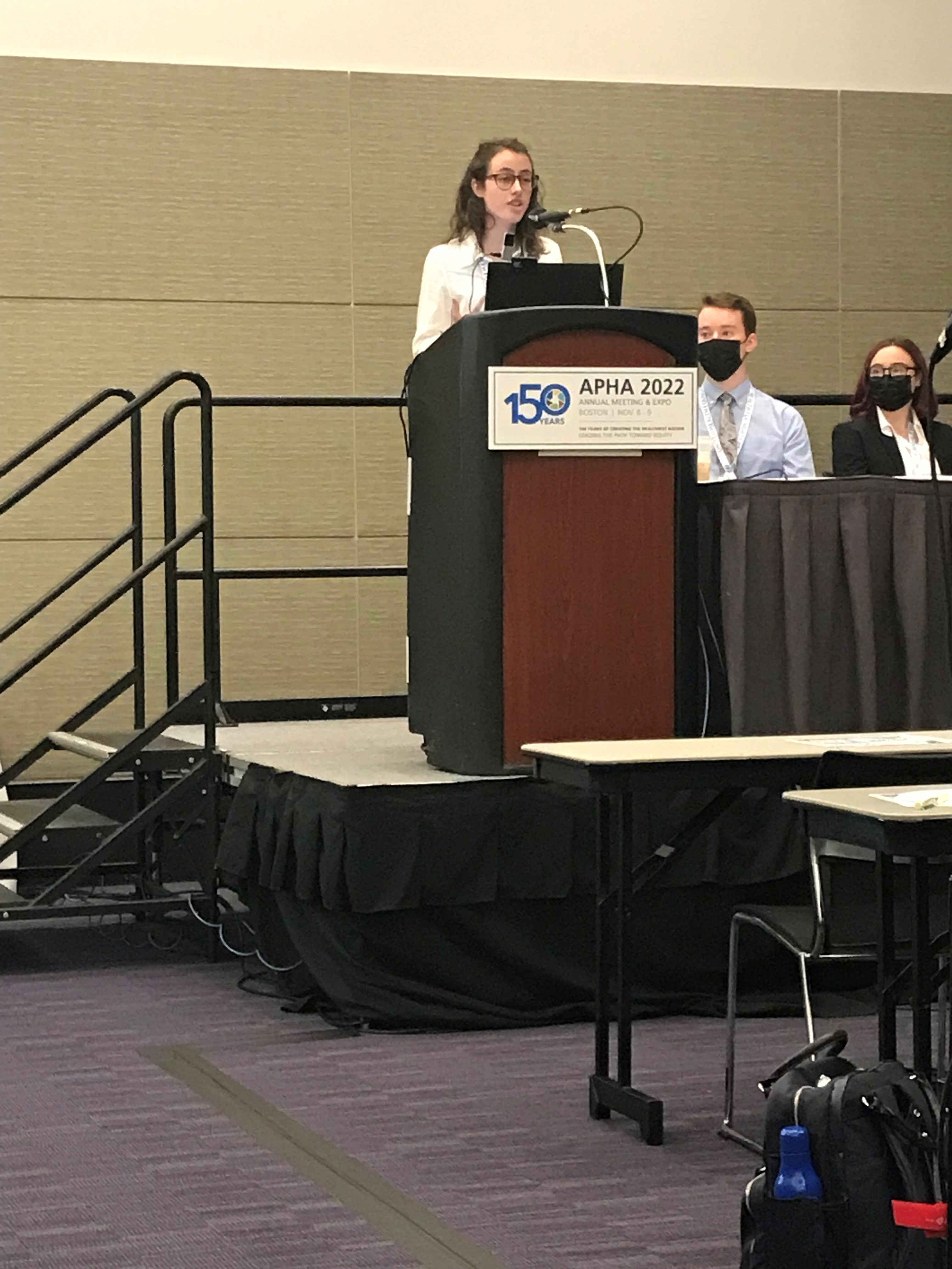 This past November, MPH student, Emma Schreier, won an APHA award from APHA’s Public Health Education and Health Promotion Section for the highest scoring student abstract! She presented her original study at the 2022 APHA Annual Meeting.